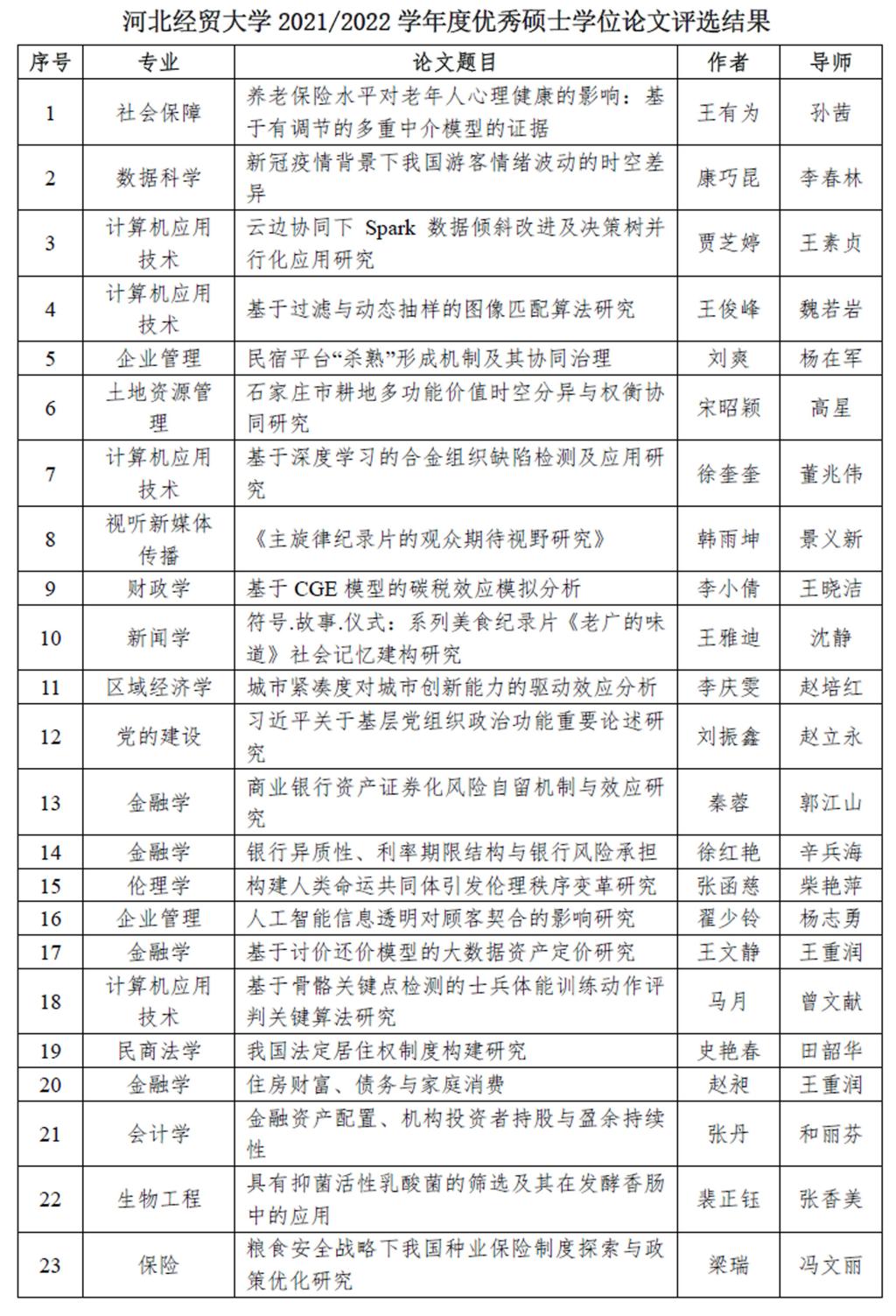 根据《太阳成集团tyc33455cc官网优秀硕士学位论文评选规则》,各公司产品单位共推荐参评论文70篇,经校内专家组评议后,评选出《养老保险水平对老年人心理健康的影响:基于有调节的多重中介模型的证据》等23篇论文为公司2021/2022学年度优秀硕士学位论文。