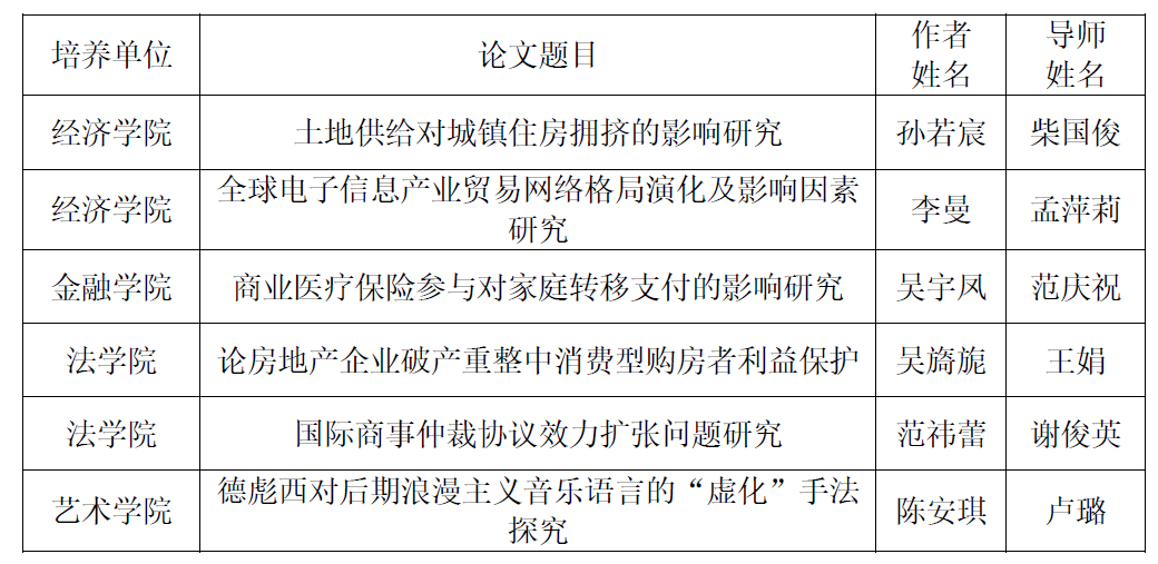 优秀学位论文是衡量公司公司产品质量的重要标志,是拔尖创新人才培养成效的具体体现。希望所有研究生及硕士生导师以他们为榜样,勤学笃研。希望各培养单位紧紧围绕立德树人根本任务,贯彻落实全国教育大会精神,发挥优秀学位论文的示范引领作用,加大优秀学位论文培育力度,完善学位论文质量保障体系,不断提升学位与研究生教育质量。