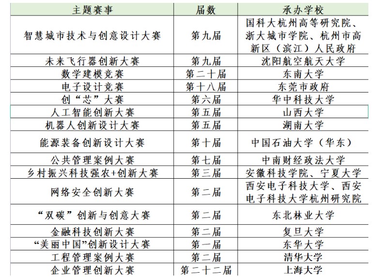 2023年中国研究生创新实践系列大赛共设置如下16项主题赛事。关于大赛赛事介绍、赛程安排、赛事指南等可登录中国研究生创新实践系列大赛官网(http://cpipc.acge.org.cn)查询并注册报名。