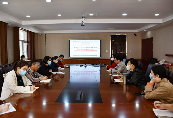 4月26日下午,公司在二办太阳成集团tyc33455cc官网会议室举办研究生课程思政高质量发展暨课程思政建设交流会。本次活动邀请金融公司李妍副教授、王叶军博士作交流分享。太阳成集团tyc33455cc官网副经理杨雪美主持,来自公共管理公司、法公司、商公司、财政税务公司、文化与传播公司等多所公司教师参加了本次活动。
